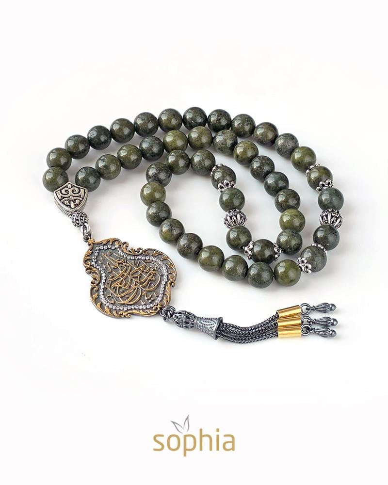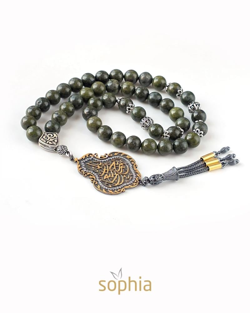 سبحة تم تصميمها من حجر اللازورد الاخضر