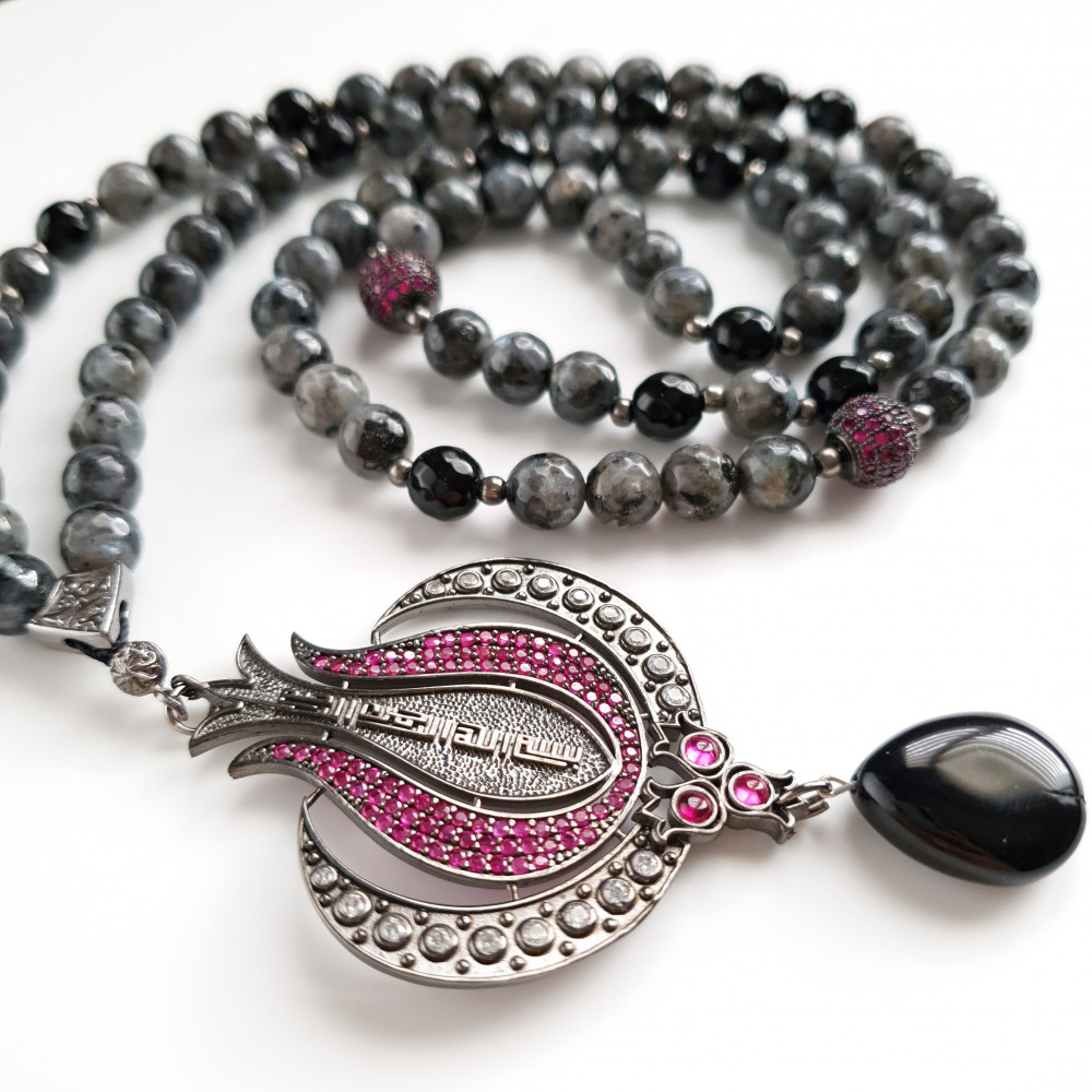 Rosary designed from Labrodite and Labrodite stone with the addition of black onyx beads