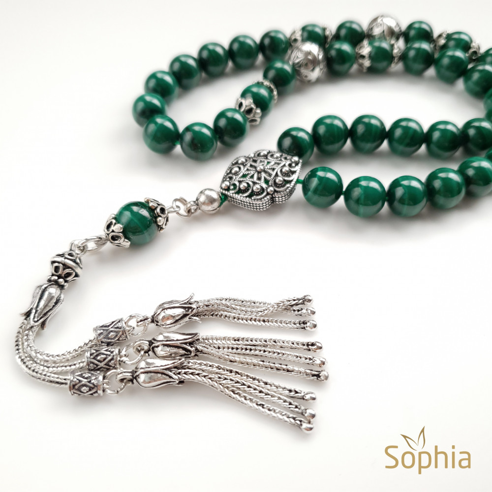 Number of beads: 39 There is a silver spacer between every 13 beads