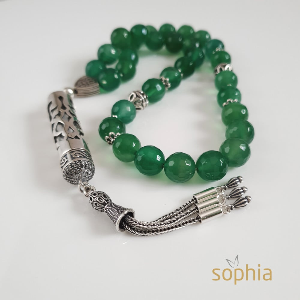 The minaret is made of a glass bottle decorated with Islamic art motifs.. An elaborate handmade design of 925 silver