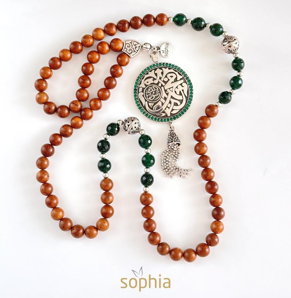 The minaret is a circular piece with a diameter of 35 mm inspired by the engravings of the doors of the Prophet’s Mosque, studded with zircon stones. A black tassel was added at the end of the minaret.