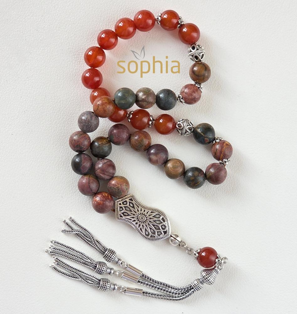 A luxurious rosary designed from agate and Picasso stone, making the rosary a piece of art that combines beauty and authenticity.