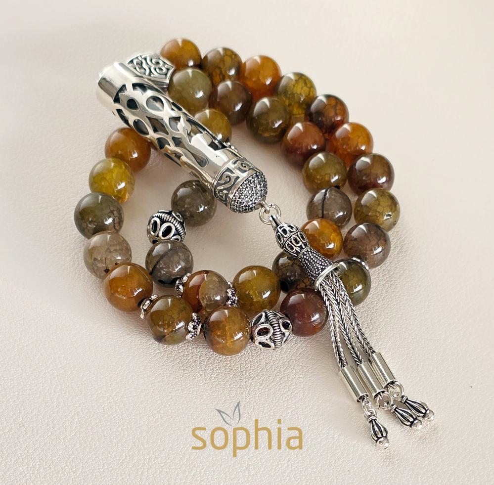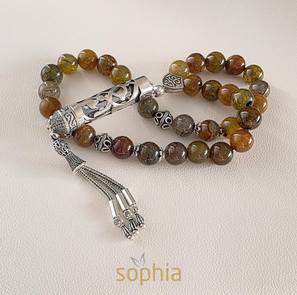 Rosary designed from agate stone (dragon veins)